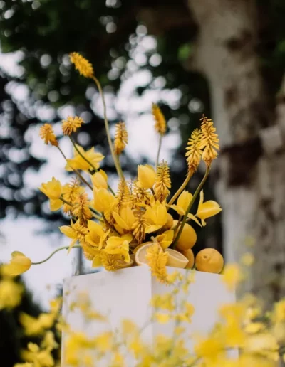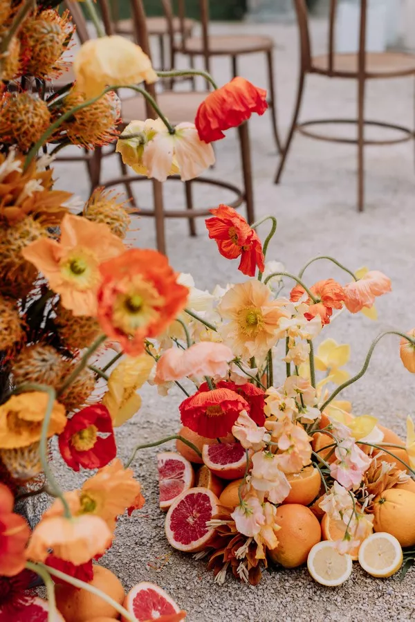 Ici, la Dolce Vita se réinvente. Exit les clichés bleu méditerranée et citron iconique : place à une palette audacieuse, vivante et terriblement moderne. Orange incandescent, rouge passion, jaune lumineux… Une harmonie chromatique qui pulse, qui réchauffe, qui fait battre le cœur plus vite, pour un mariage coloré incarnant la passion.