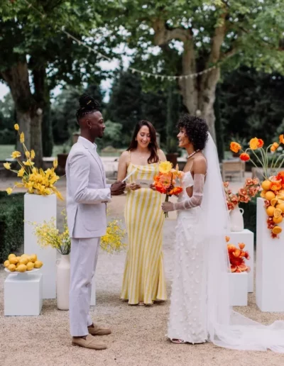 Dans la douceur ensoleillée du Sud de la France, au cœur du Mas d’Arvieux près d’Avignon, l’équipe du jour a imaginé une célébration vibrante, solaire et profondément festive. Une parenthèse hors du temps où l’amour se décline en couleurs chaudes, en textures sensorielles et en émotions sincères.