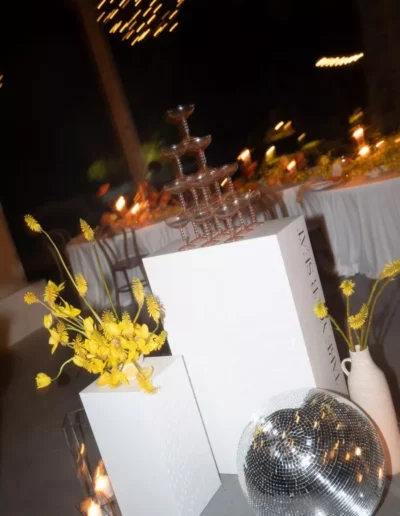 Ce que l’on aime profondément dans cette inspiration, c’est cette cohérence. Les colonnes ne sont pas seulement un décor de cérémonie. Elles deviennent un fil conducteur, une signature que l’on retrouve dans différents espaces du mariage.